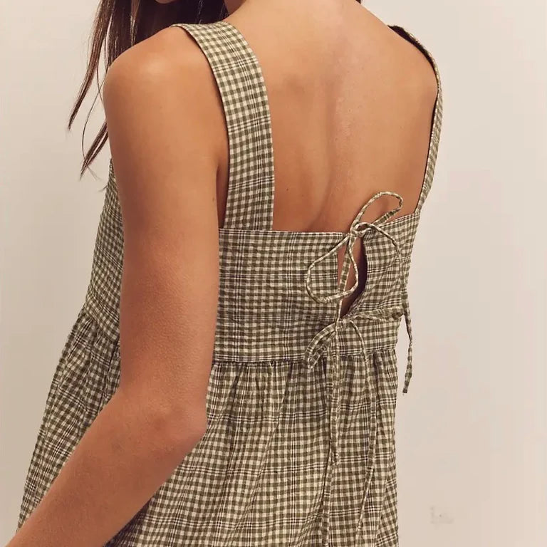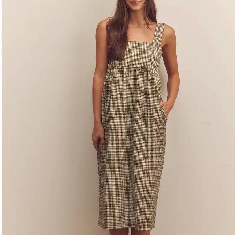 Piper Olive Plaid Back Tie Midi Dress