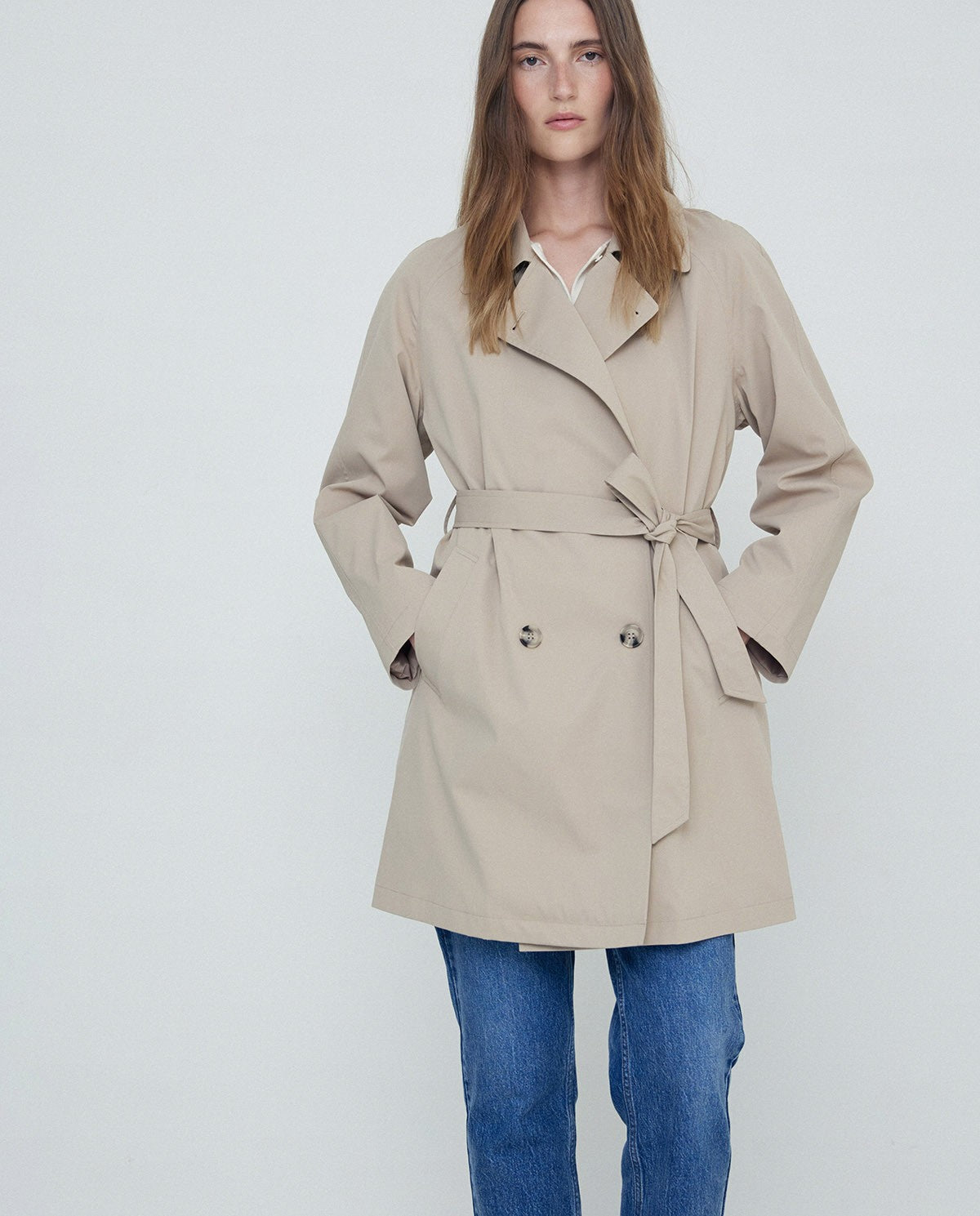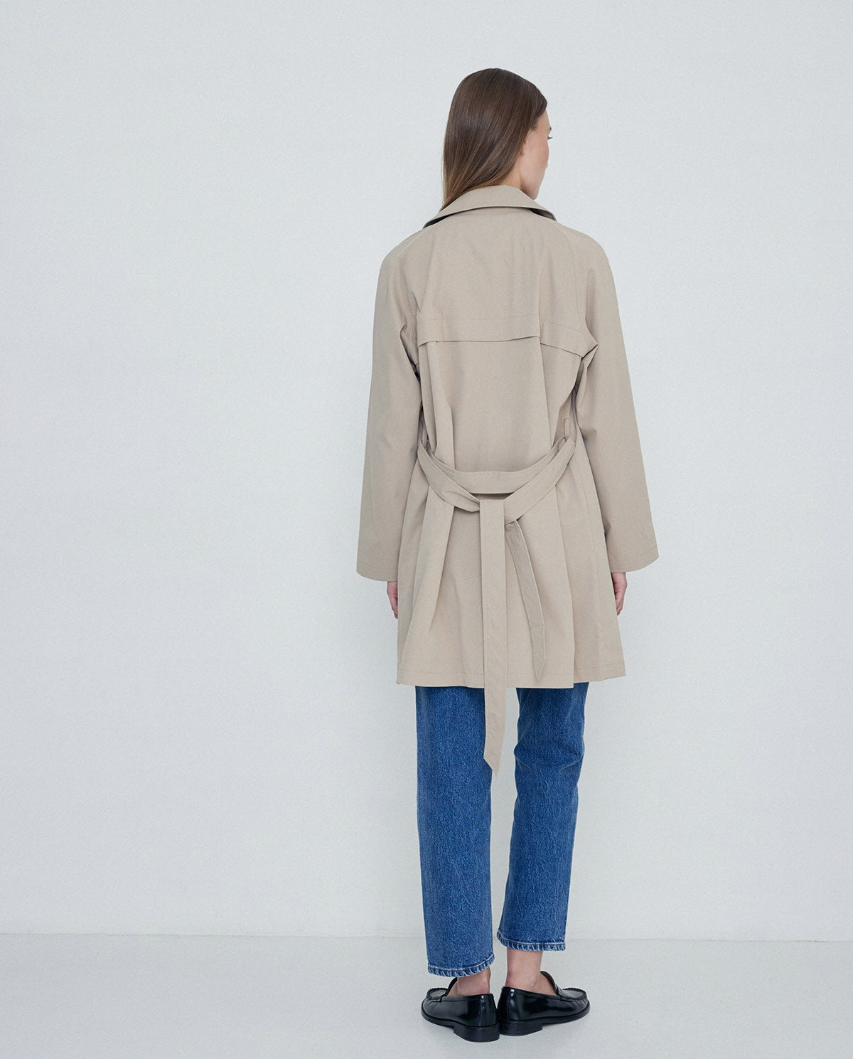 Take on the rain with boldness in the Kathy Beige Waterproof Raincoat Coat. Crafted with a water repellent exterior and comfortable interior lining, this midi trench coat is designed to last. Featuring a double-breasted front closure and wide belt, this unique coat will keep you dry and stylish.