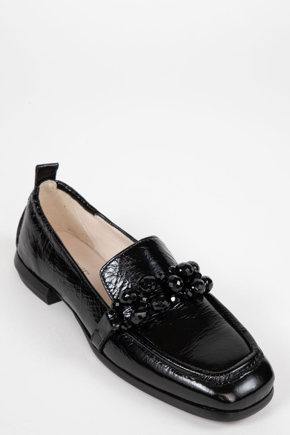 Step into sophistication with Lena Luxe Black Loafers. Made of soft pantent leather for ultimate comfort, with an anti-slip bottom to keep you on your feet. The padded leather insole provides all-day support, while the decorative glass balls add a touch of playfulness to your look. Walk with confidence and style in Lena Luxe.