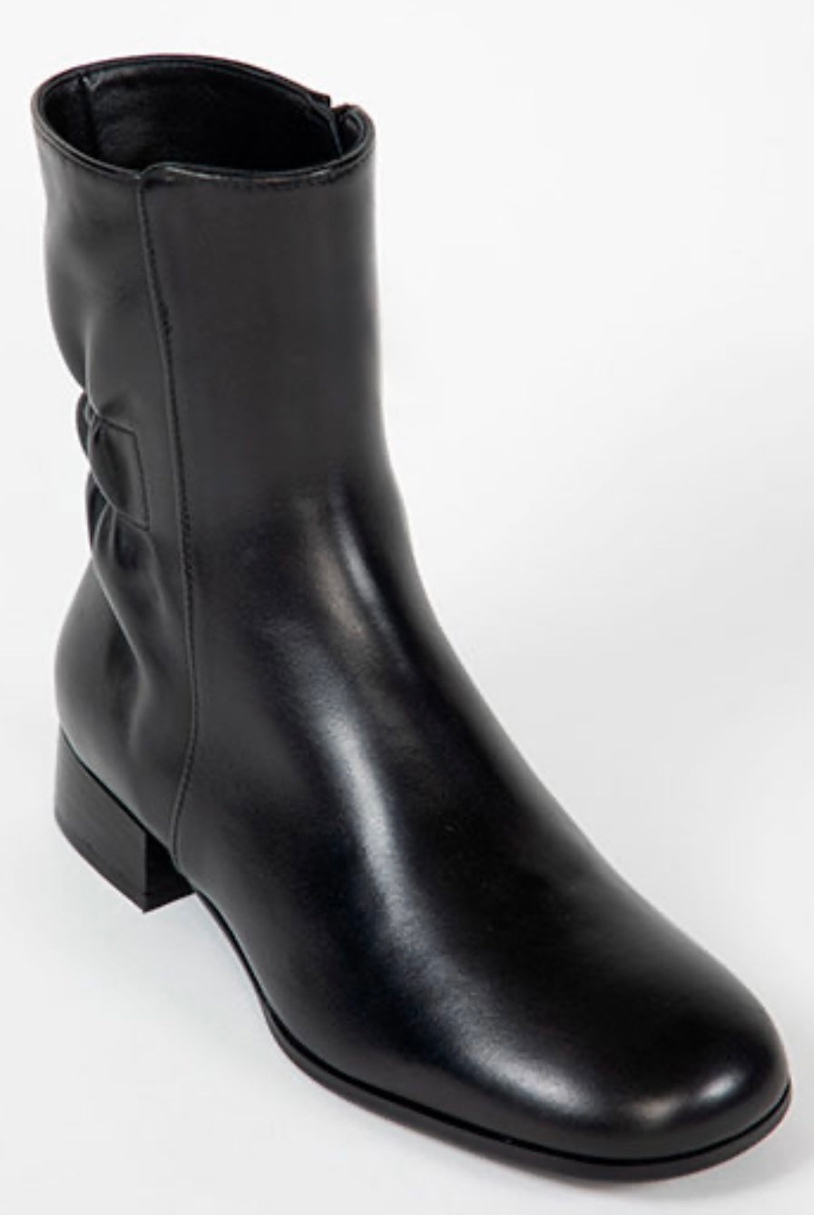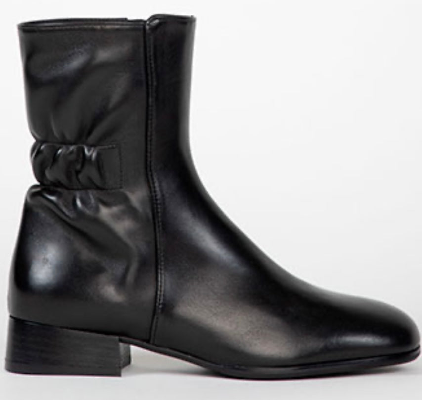 Step boldly into unparalleled comfort and style with the Nicole Supreme Black Leather Boot. Crafted in Spain, this boot features a very soft leather body and cushioned insole for all-day ease. Its sleek design is accented by a hidden gathered elastic detail and an inside zip closure for a seamless, daring look. The soft lining enhances the luxurious feel, making each step a confident statement.