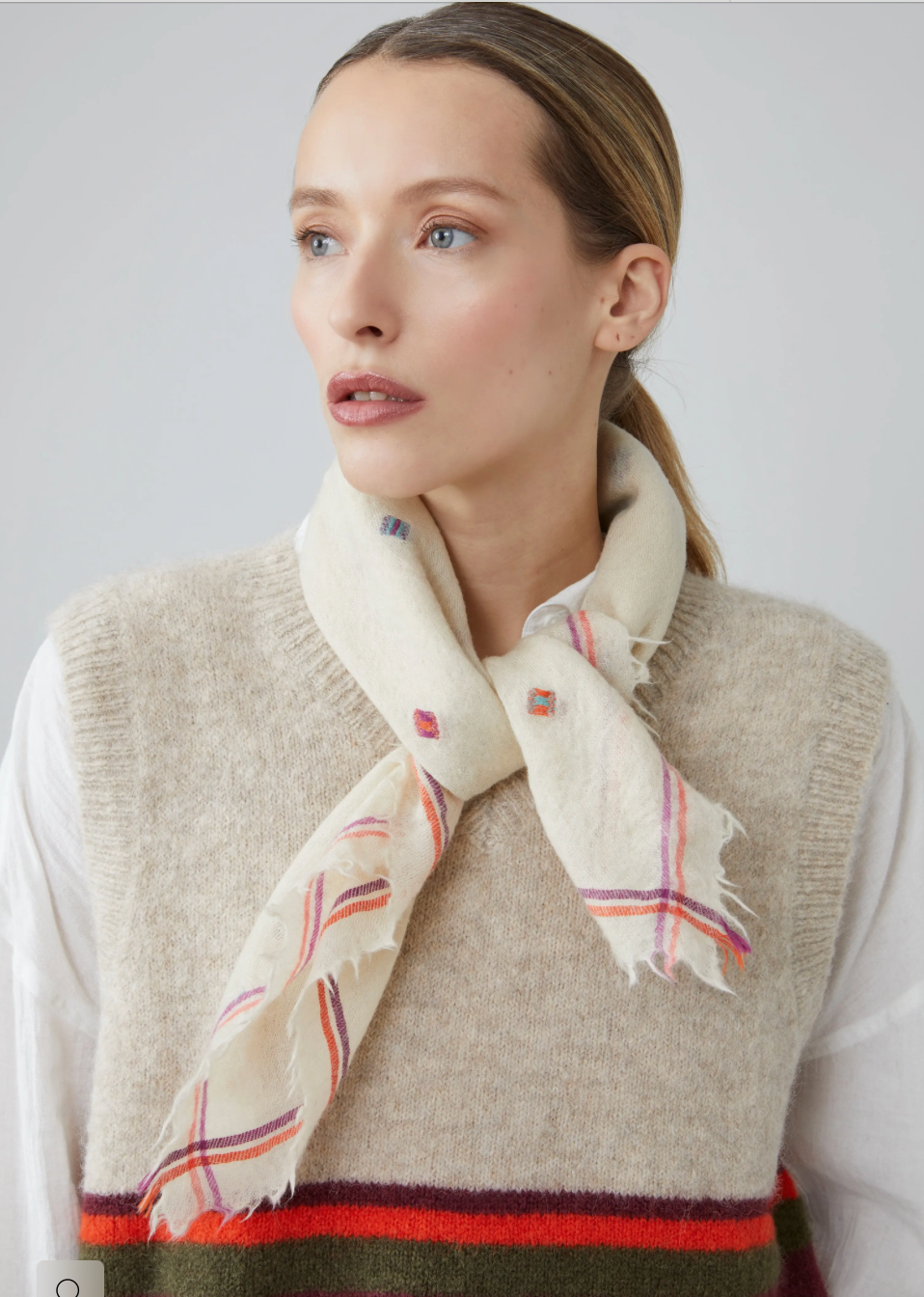 The Chelsea scarf N°815 celebrates the art of traditional weaving with its small flag-shaped motifs, handmade using the ancient Indian technique of jamdani. Lightweight and fluid, it evokes the timeless elegance of a clan united by its symbols, blending artisanal heritage and modernity with a singular delicacy.