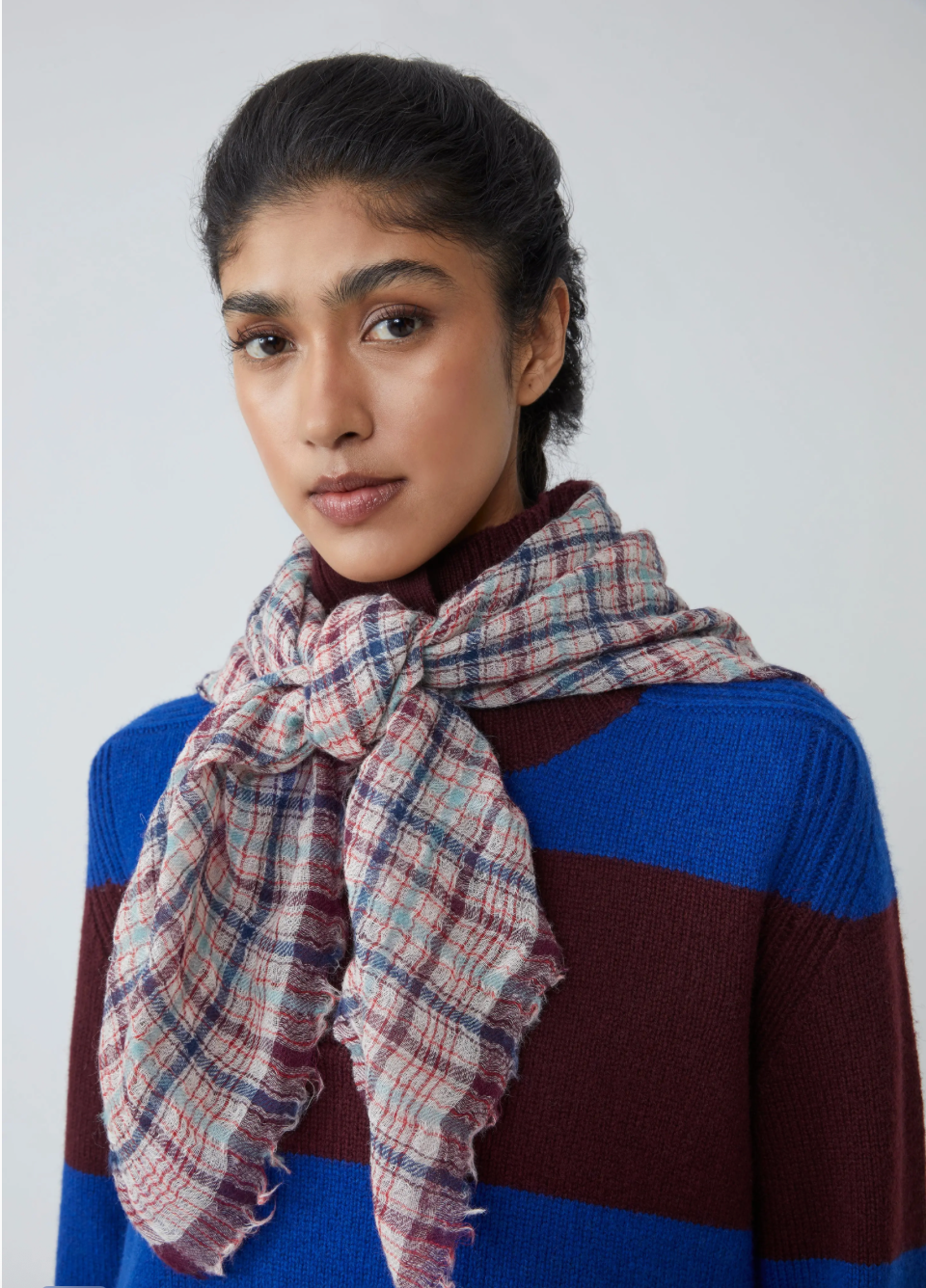 This season's new stole, the Edimbourg scarf N°800 embodies the understated elegance of Scottish tartan, revisited by Moismont as a symbol of belonging. Hand-woven in fine, lightweight wool, it features a pattern of small checks inspired by the Edinburgh tartan, designed in 1970 by Hugh Macpherson to commemorate the Commonwealth Games. A pattern steeped in history, somewhere between textile heritage and collective memory.