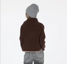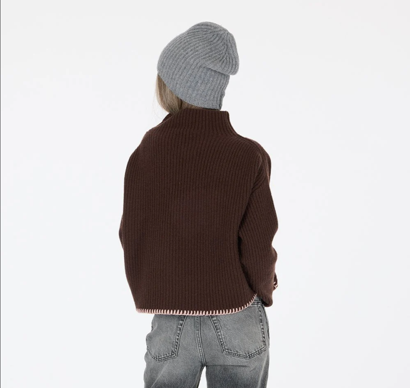 The Marlow Cashmere sweater is an oversized fit with a classic length. It’s detailed with a high and wide funnel neck, drop shoulders, and contrast whip stitch at the bottom hem. This rib knit sweater is made from 100% cashmere.