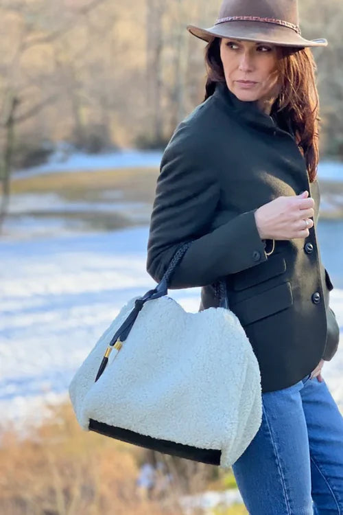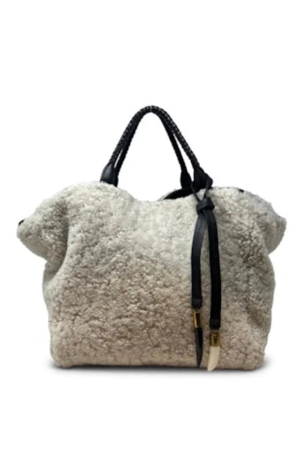 Square Black Natural Shearling With 2 Handle Tote