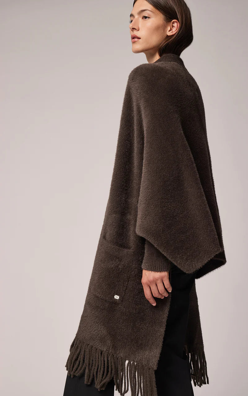 The DANELA by SOIA & KYO is a one-size-fits-all transitional weather head-turner. Crafted using super soft feather yarn, this jacquard-knit scarfigan also features cozy rib-knit cuffs and lavish fringe at both ends. Finished with large patch pockets.