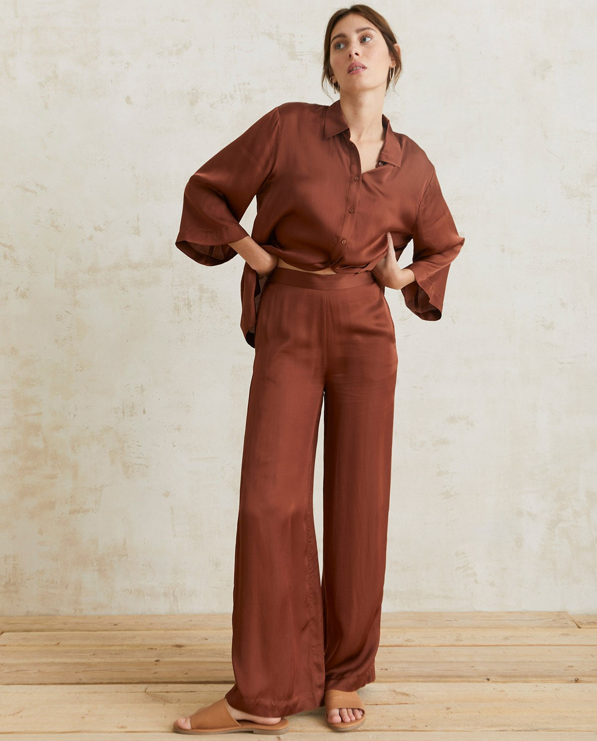Apollo Chocolate Oversized Sateen Shirt