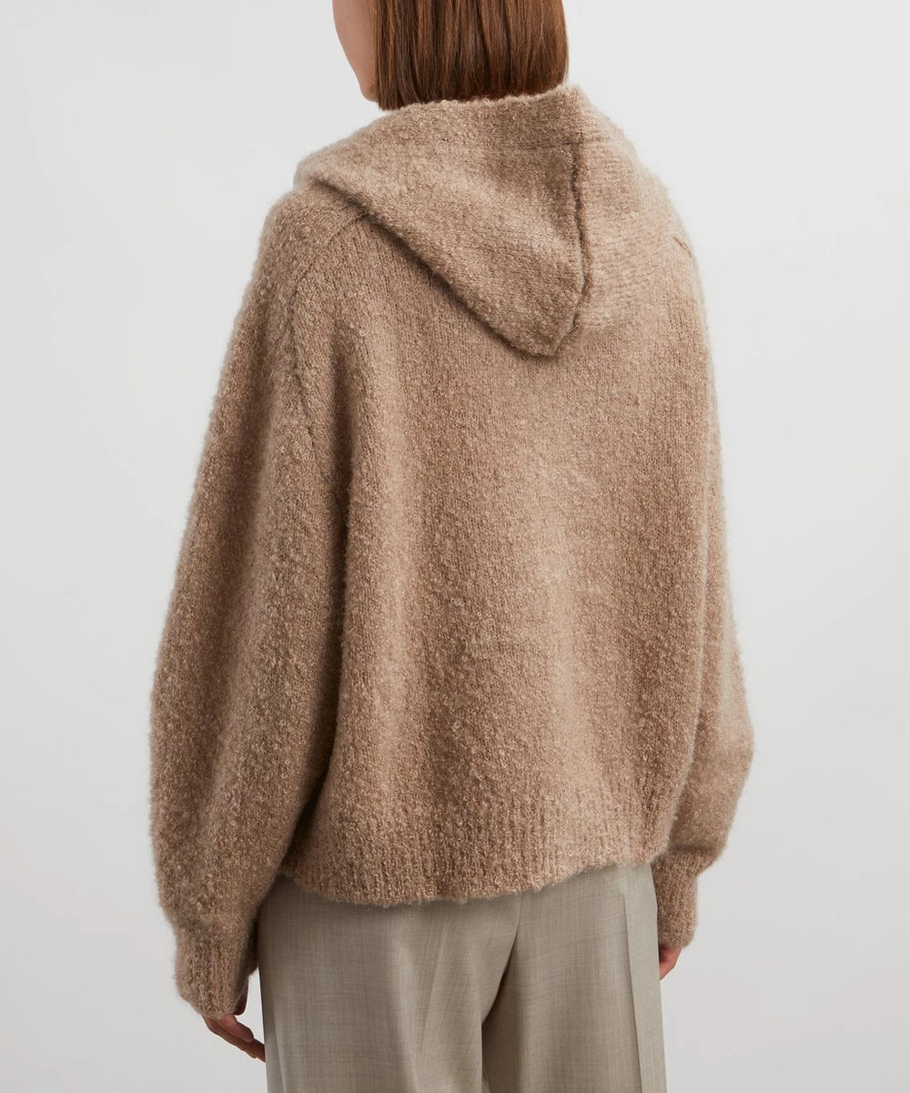 Casual yet chic, this luxuriously soft hoodie effortlessly combines warmth and style. Made from premium cashmere with a tactile bouclé finish, its relaxed fit is complemented by loose raglan sleeves for a slouchy silhouette. Finished with a cozy hood featuring thick drawstring ties, it effortlessly combines comfort with sophistication.
