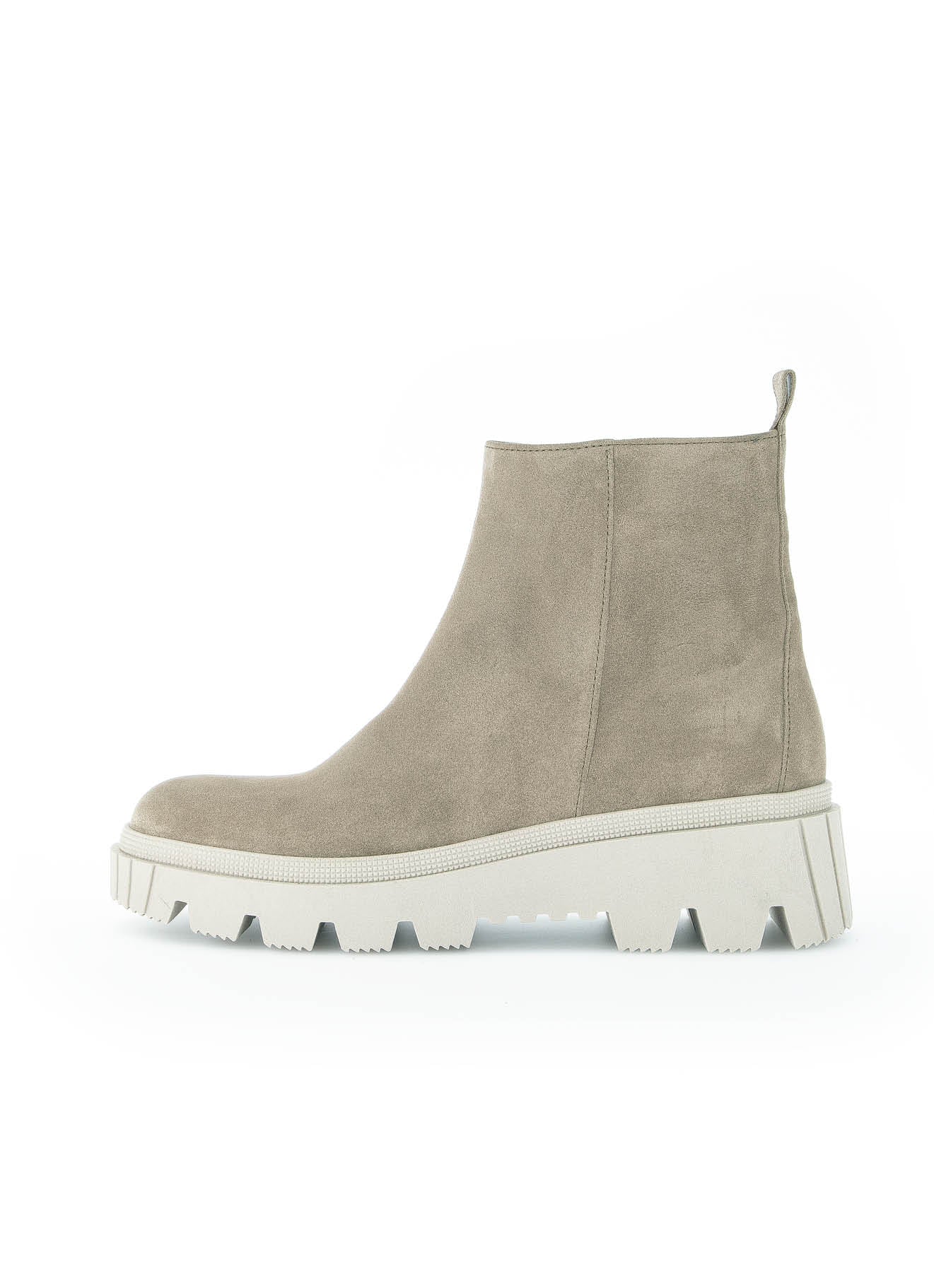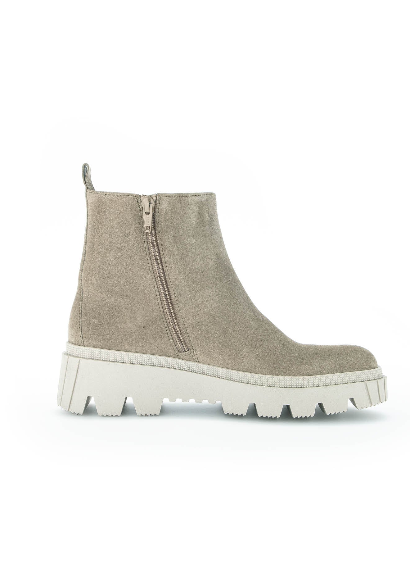 Lug sole suede Chelsea boot set on a well-cushioned footbed and block heel.