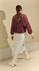 This boldly designed seed stitch knit jacket features a wide sleeve for an avant-garde silhouette. Crafted in Igualada with luxurious Italian yarn, its blend of RWS-certified virgin wool and RAS-certified baby alpaca ensures responsible, ethical production without compromise. Slip it on for a fearless blend of comfort, sustainability, and striking style—no buttons needed to make a statement.