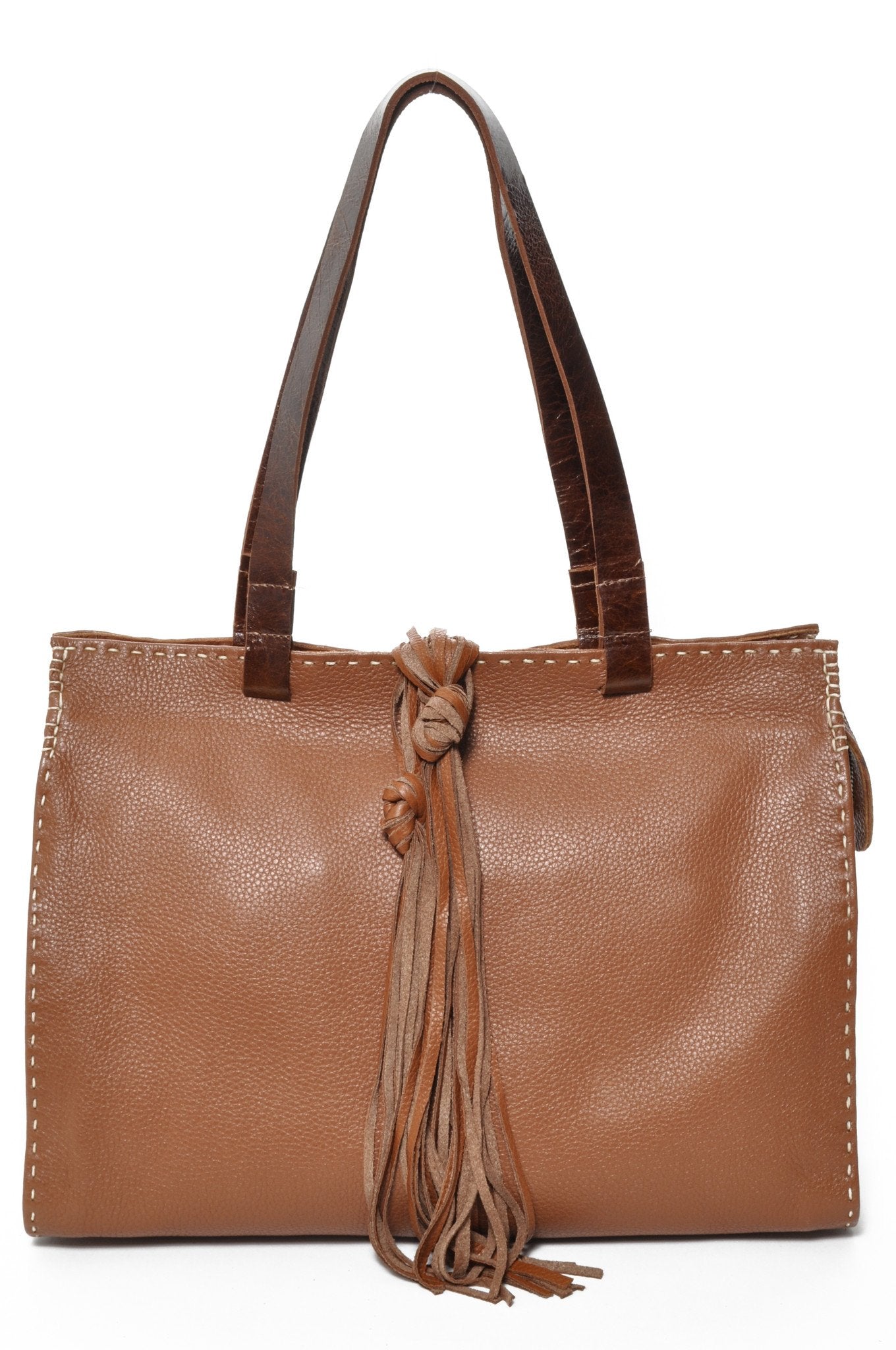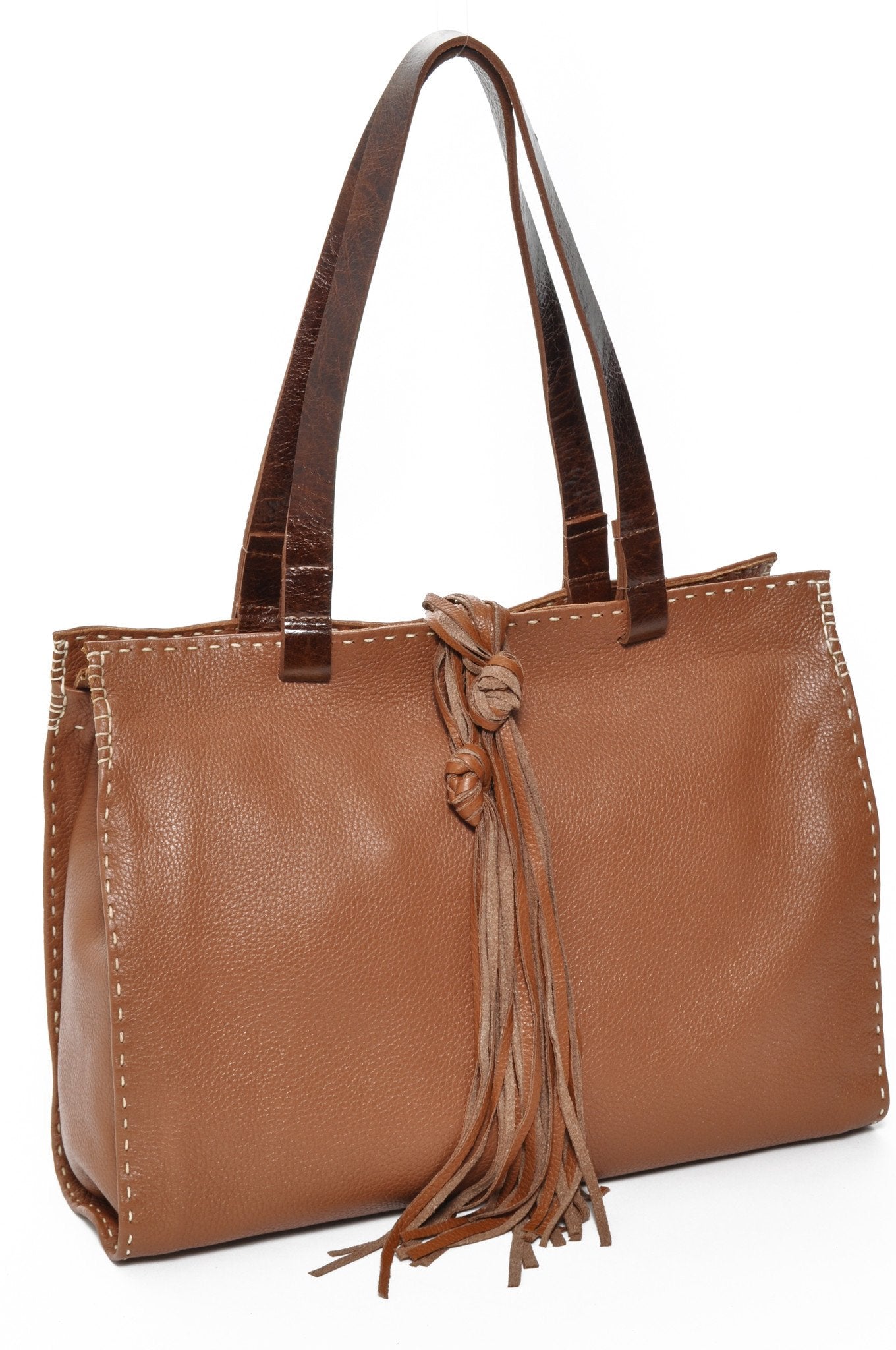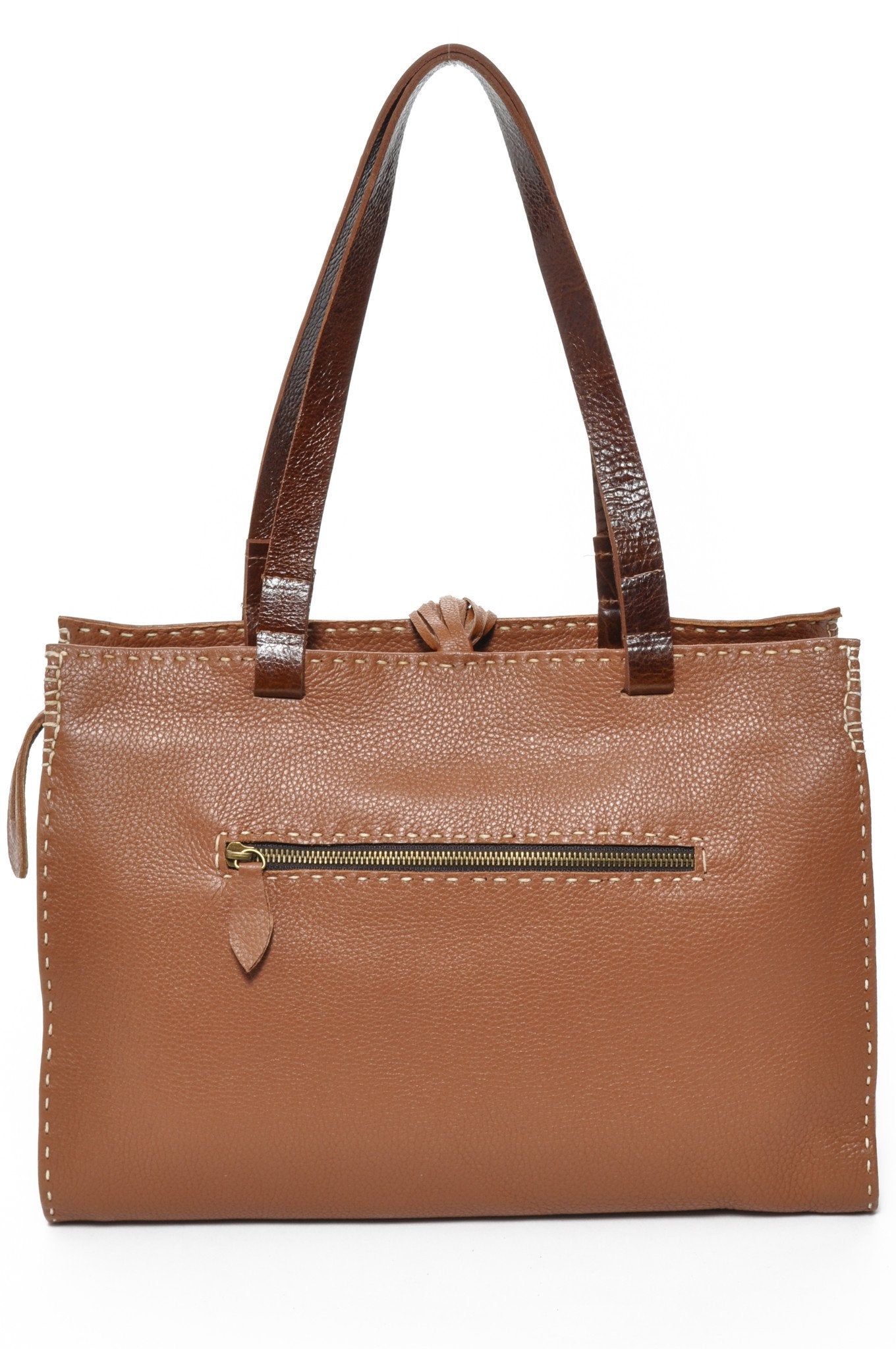 - Signature saddle hand stitching