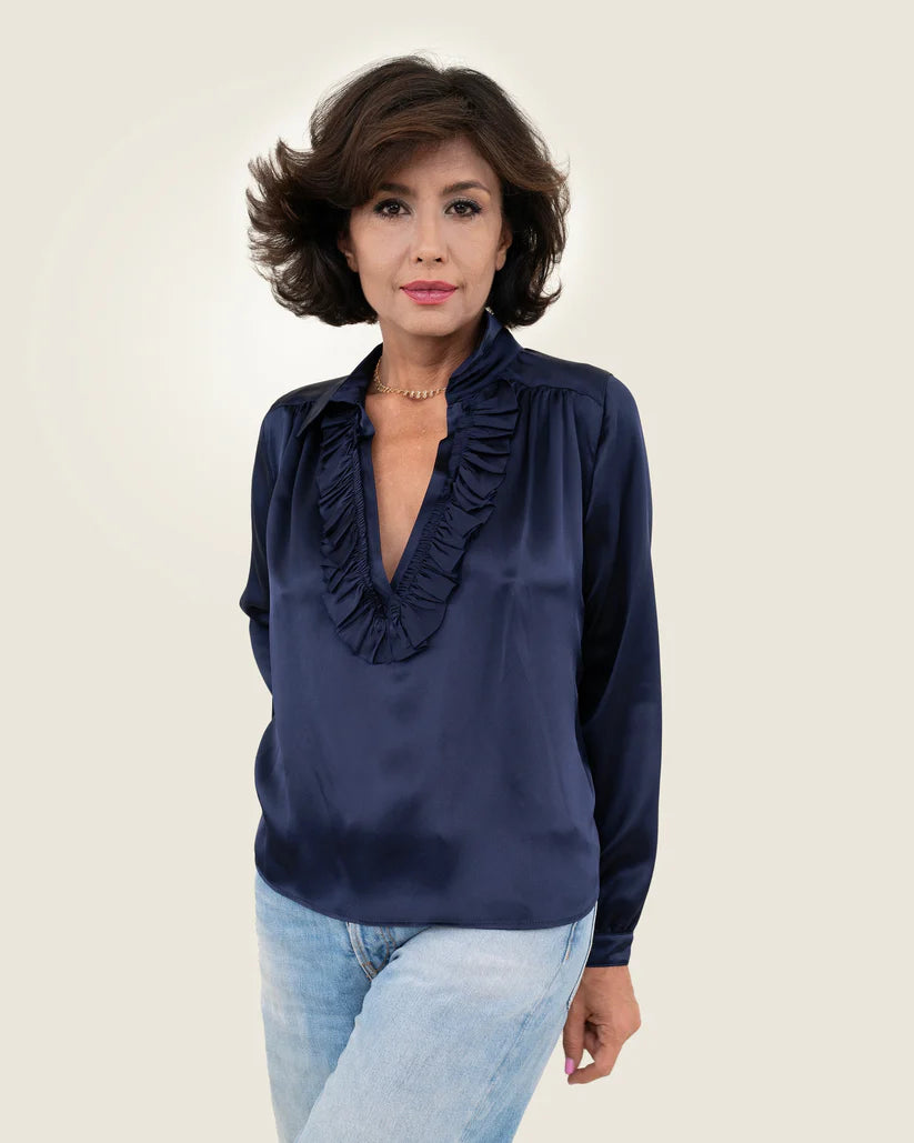 Take on new challenges with the CELINE Silk Blouse! Made from luxurious silk, this shirt's cascading ruffles and elegant center front opening add a modern twist to your wardrobe. Its soft, smooth feel offers refined comfort, while complementing any outfit from office to casual. Step out in style and confidence with CELINE.
