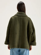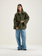 Introducing the Ethel in moss reversible zip jacket! Get the best of both worlds with faux sheepskin on one side and faux suede on the other. With a front zip and dropped shoulders, this jacket combines versatility with a classic and comfortable fit. Because who says you can't have it all?