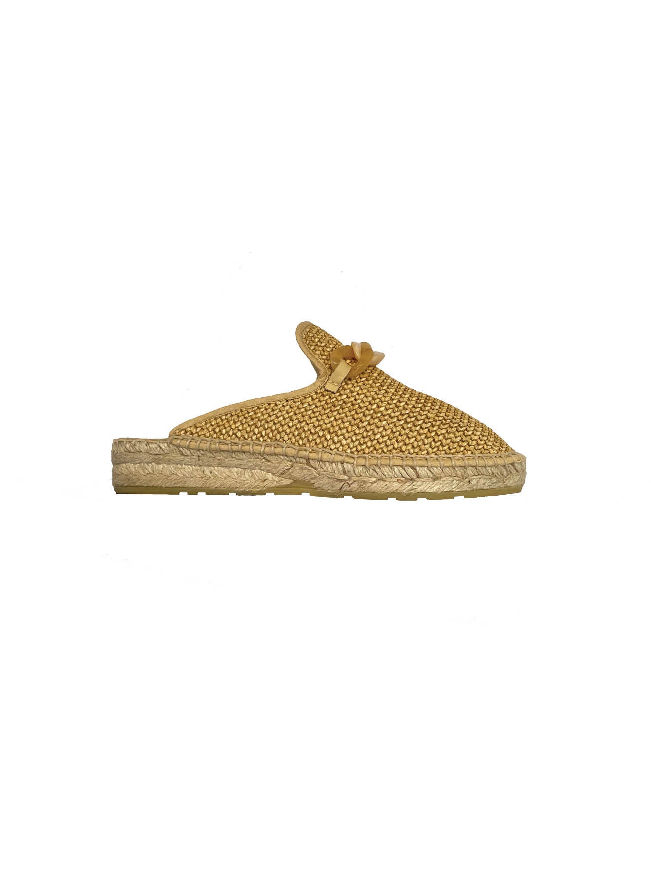 Espadrille slides handmade in Spain. Very comfortable and looks cute with pants, dresses and skirts. Such easy slides for the summer. The chain detail adds a bit of fun and class to your outfit!