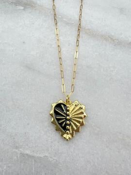 Fancy Black Enamel and Gold Heart Necklace (HJ-1032)