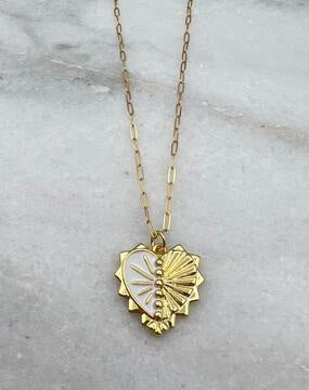 Fancy White Enamel and Gold Heart Necklace (HJ-1031)