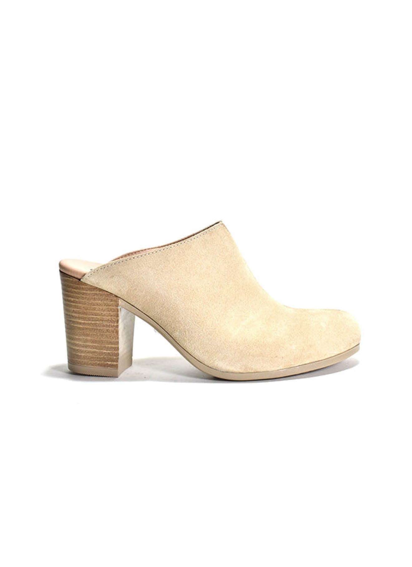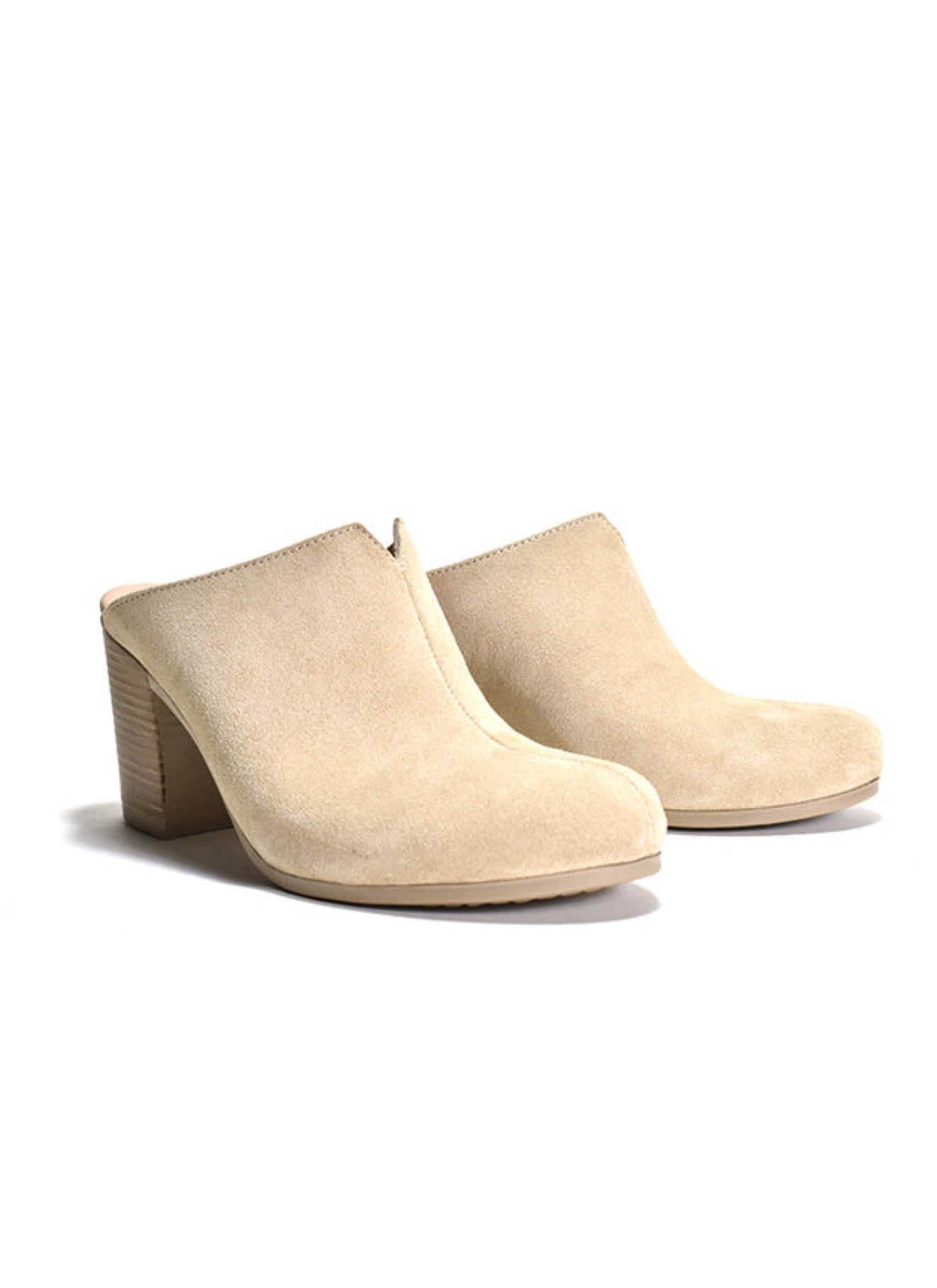 Classic notch clog on stacked heel. Suede or leather upper. Leather footbed. Leather lining. Synthetic bottom. Made in Italy.