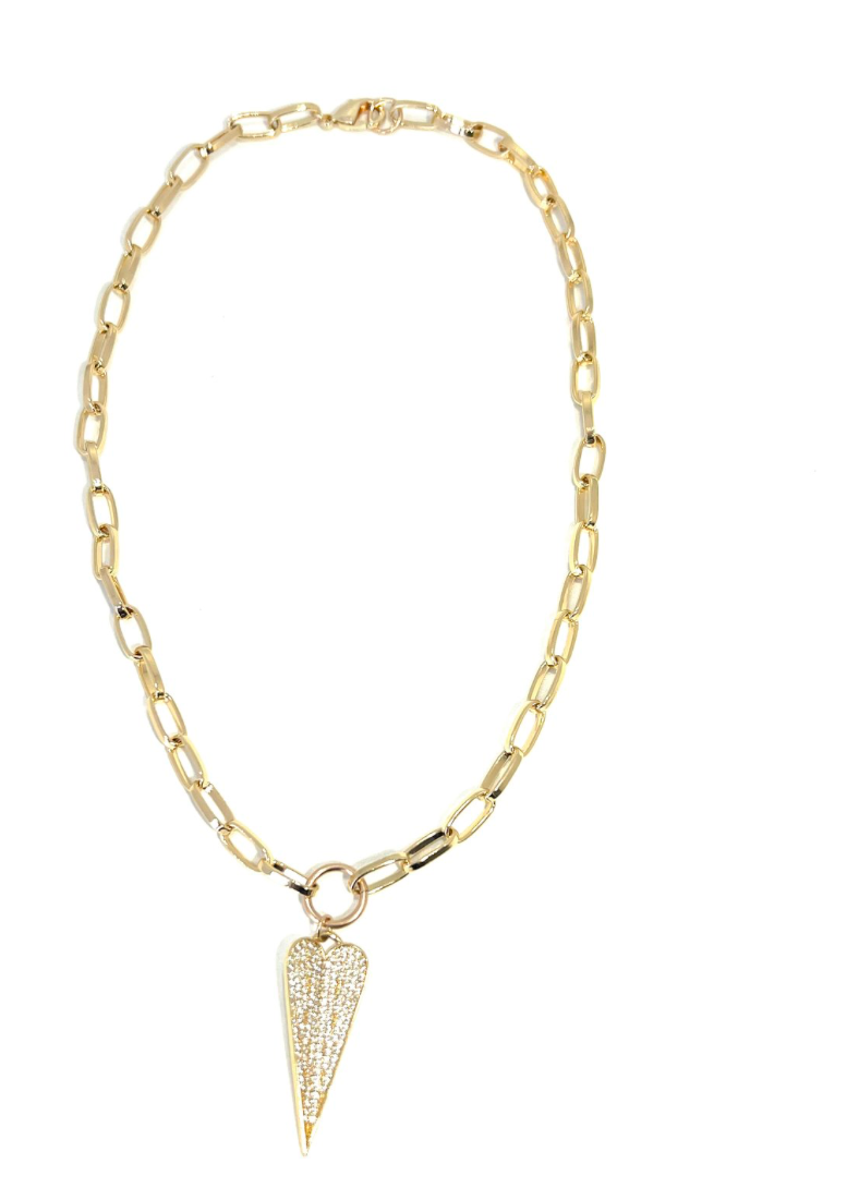 Gold Filled Pave Heart on Link Necklace RN-0625