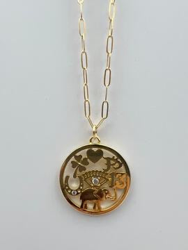 Good Luck Cutout Medallion Necklace (HJ-1043)