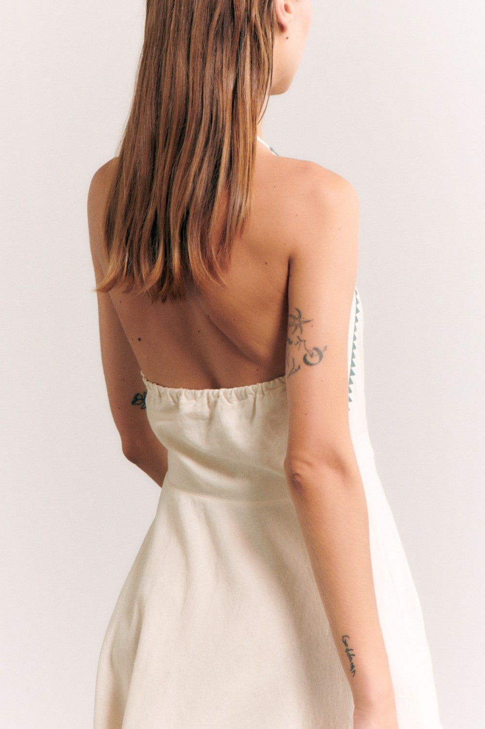 Greece Off White With Teal Stitching Halter Dress