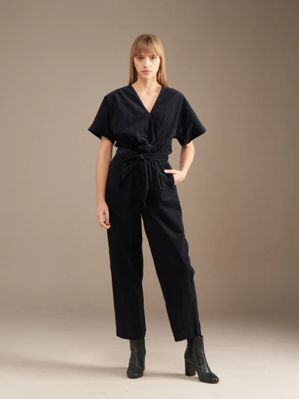 A jumpsuit that can go in any style direction is a reliable ally for days when you just don't know where to start. With a feminine cross heart shape, Honolulu is made from pure cotton baby cord. Wear it by day, layered over a second skin turtle neck, and finish the look with chunky sole ankle boots, or dress it up for eveningwear with gold jewelry and pointy toes flats.