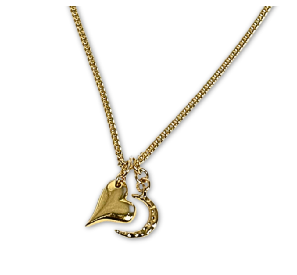-Gold-Filled Floating Heart & Hammered Crescent Moon