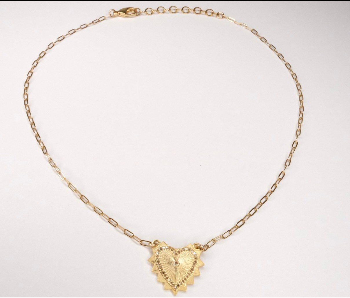 14k gold dipped with pavé diamonds on a 16-18” adjustable baby paper clip chain.