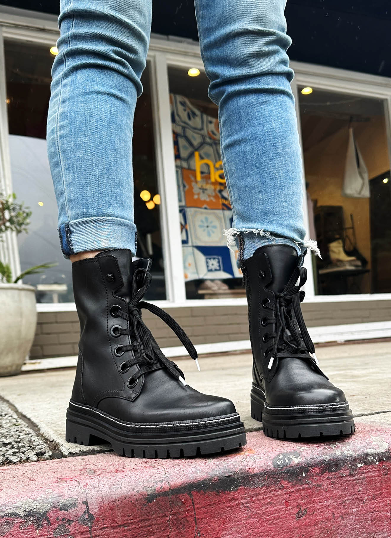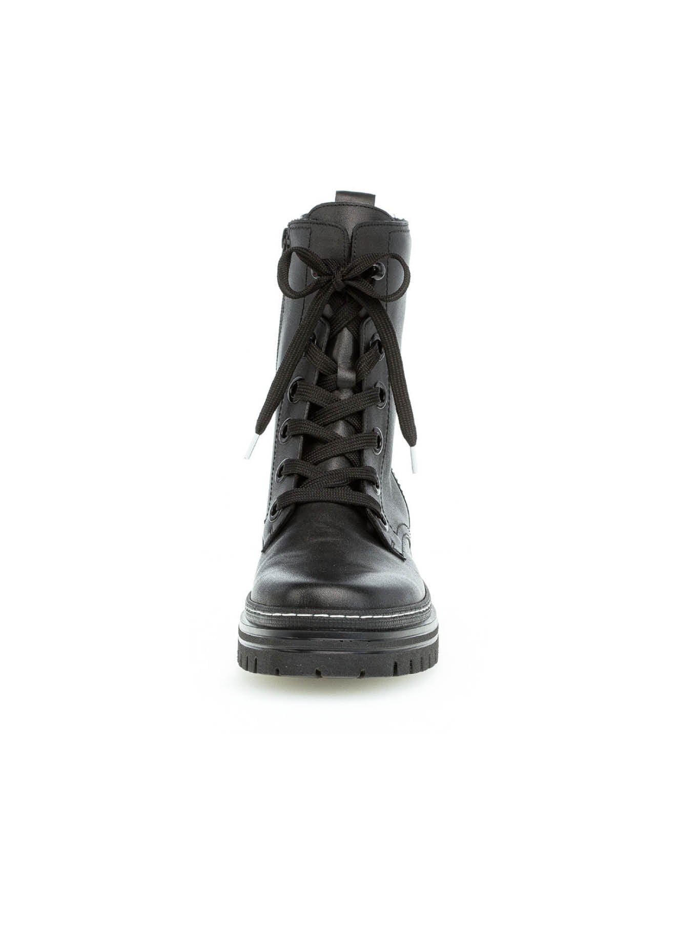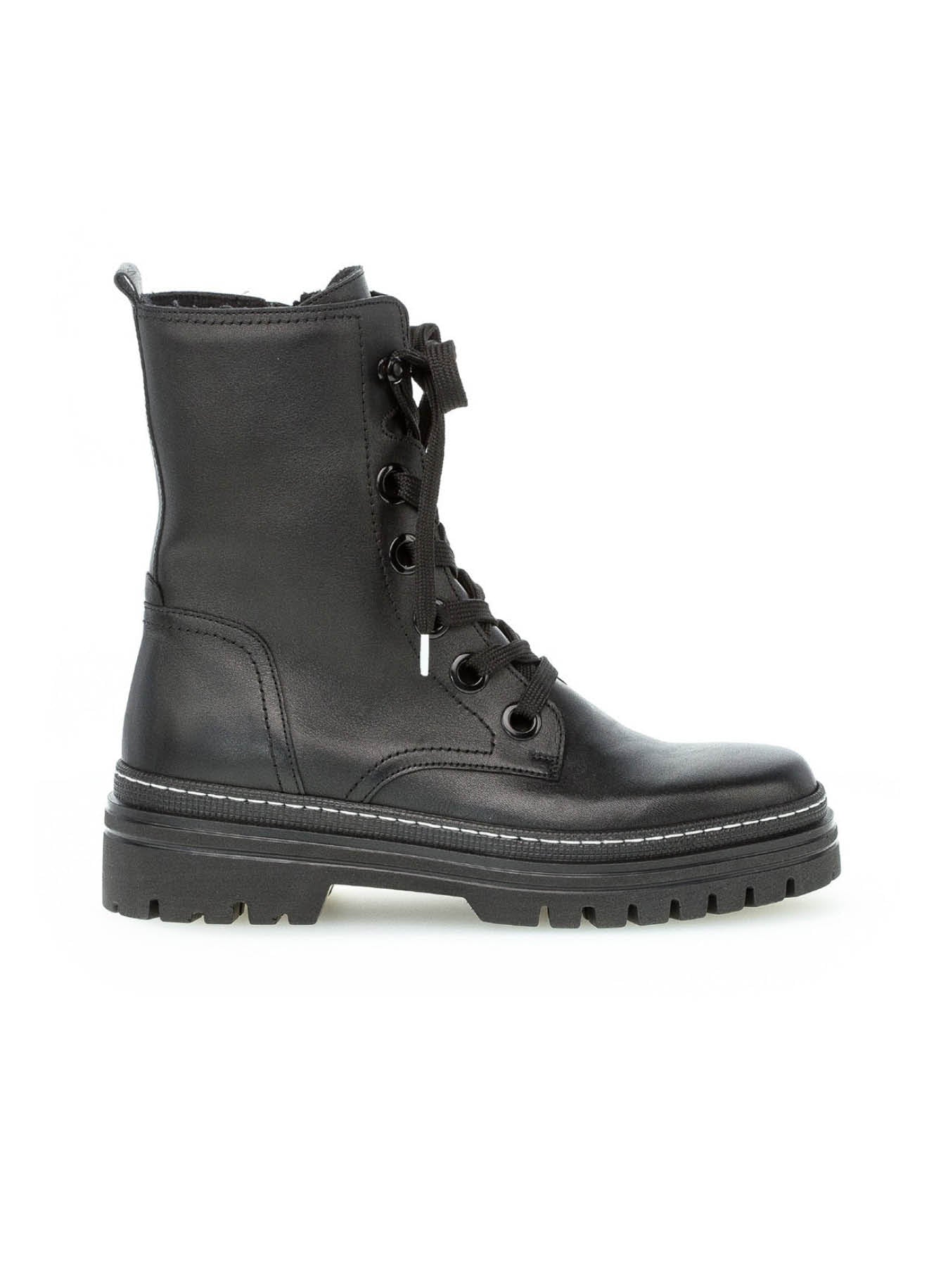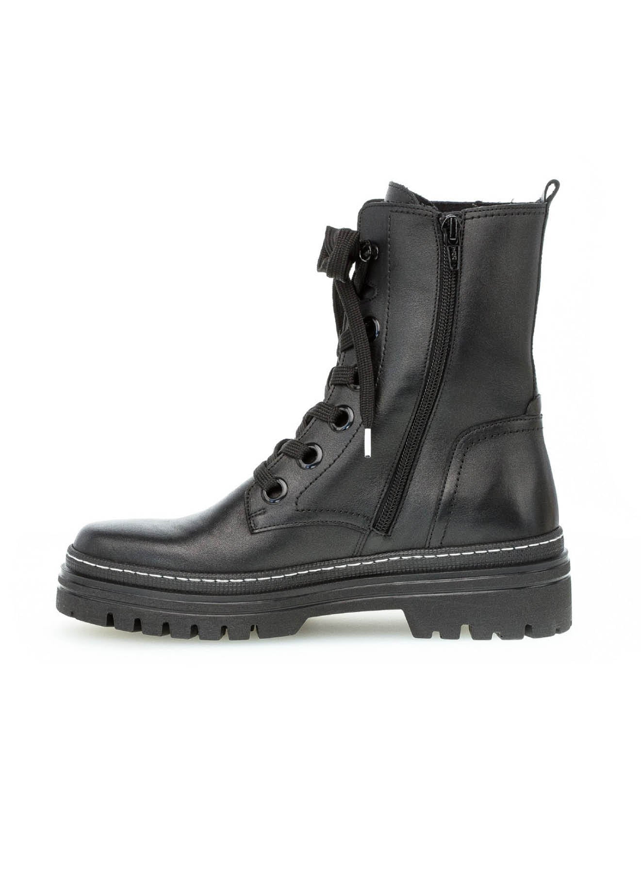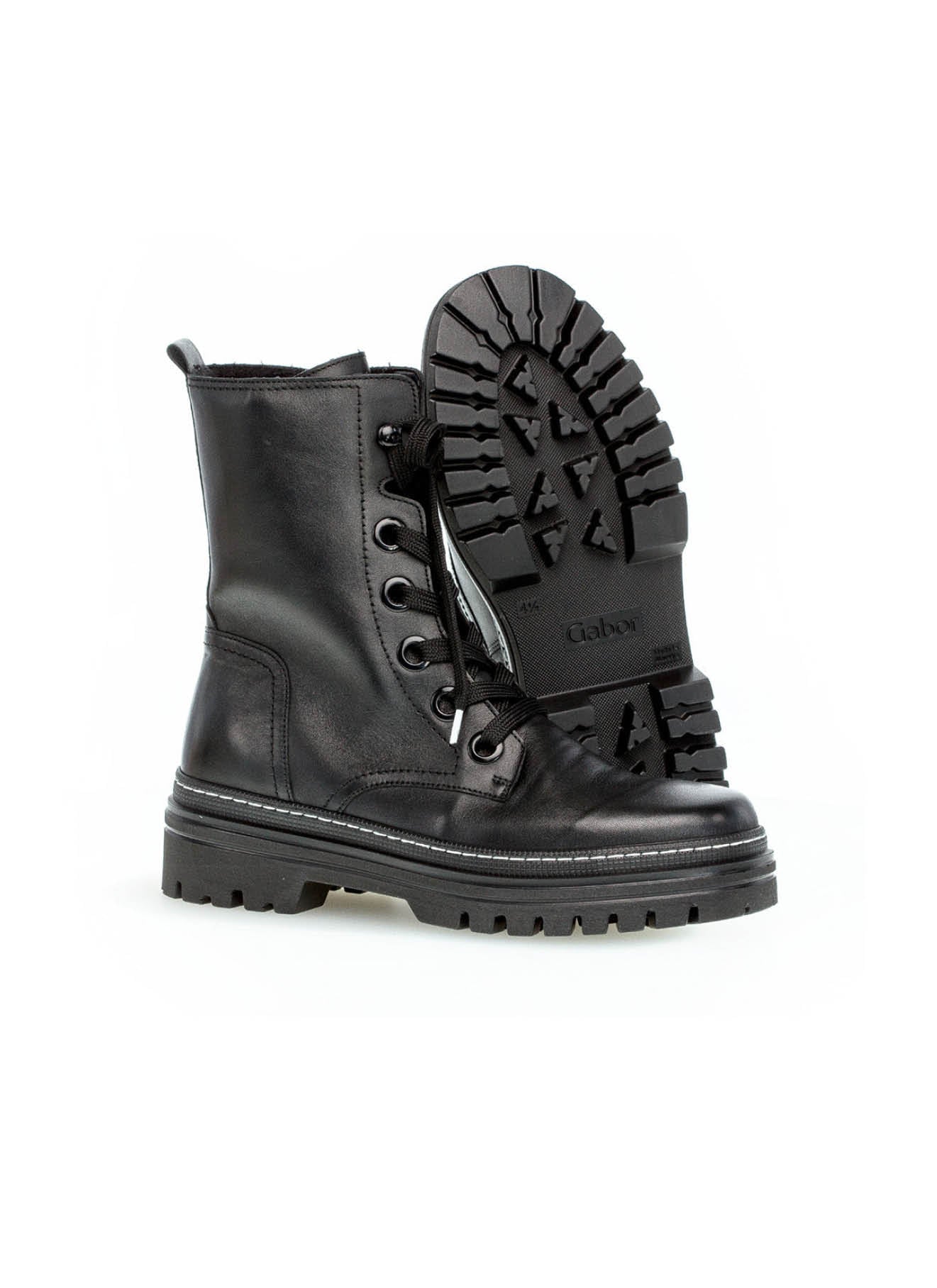 The Gabor military style boots with six eyelets is right on trend with a buttery soft black leather upper. A full-length zip on the inner allows for an easy on off while the laces allow you to achieve a more personalized fit.