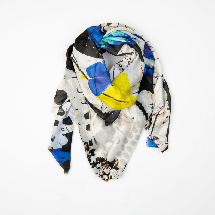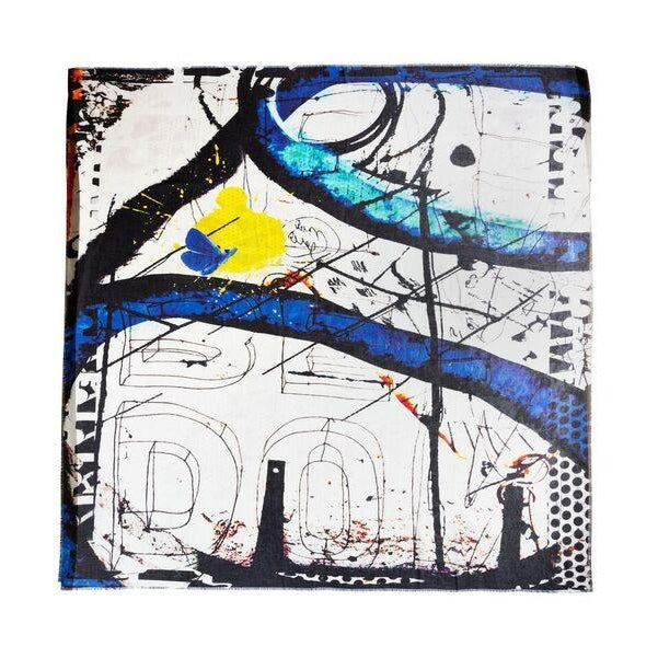 Luxury scarf with soul and street cred designed by merging abstractionism with real imagery. Sketches transformed into wearable art, also effortlessly ties into a belt or wrap like a headband.