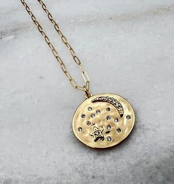 Moon & Stars Gold Filled With CZ Disc Necklace HJ-1034