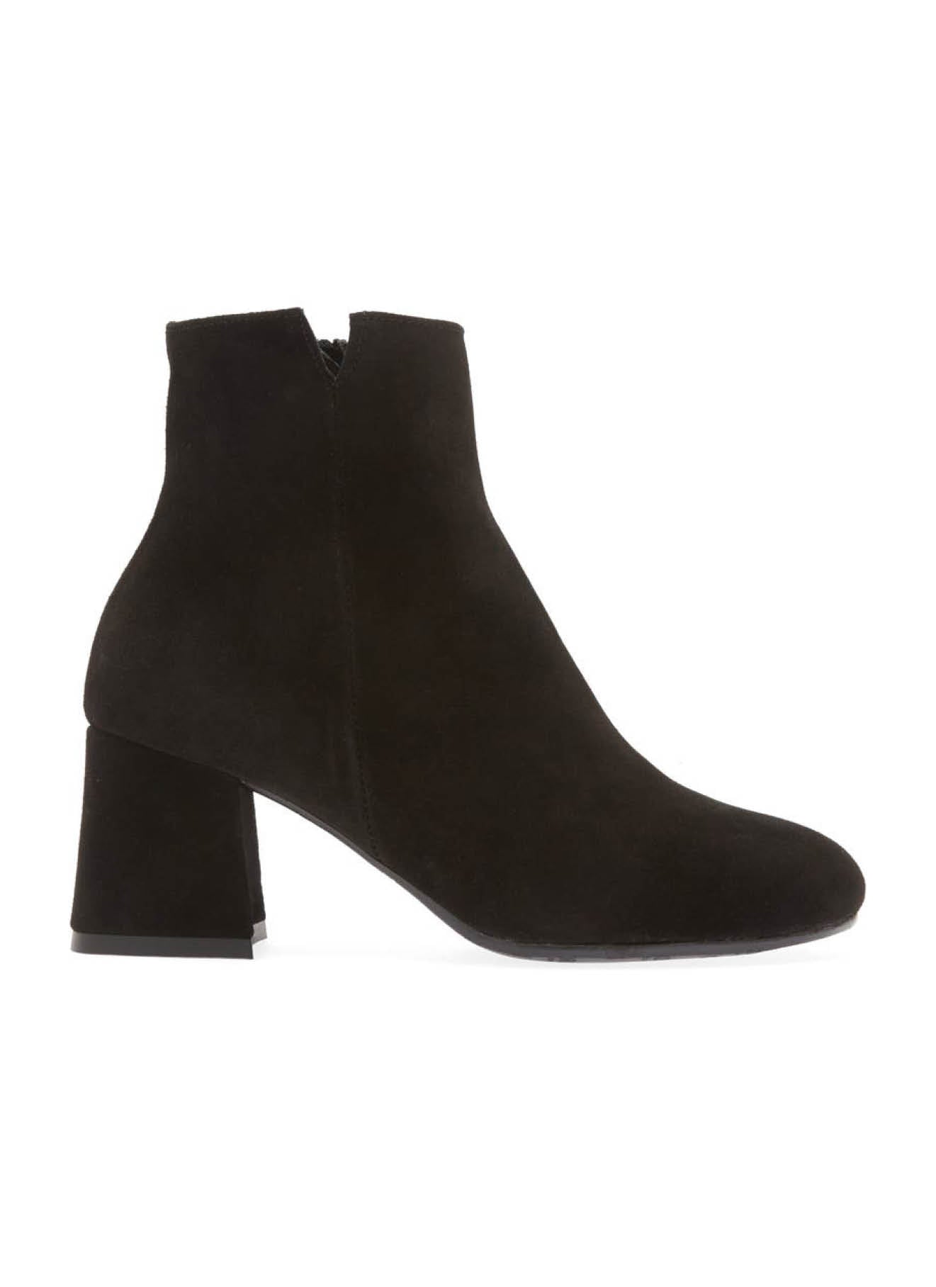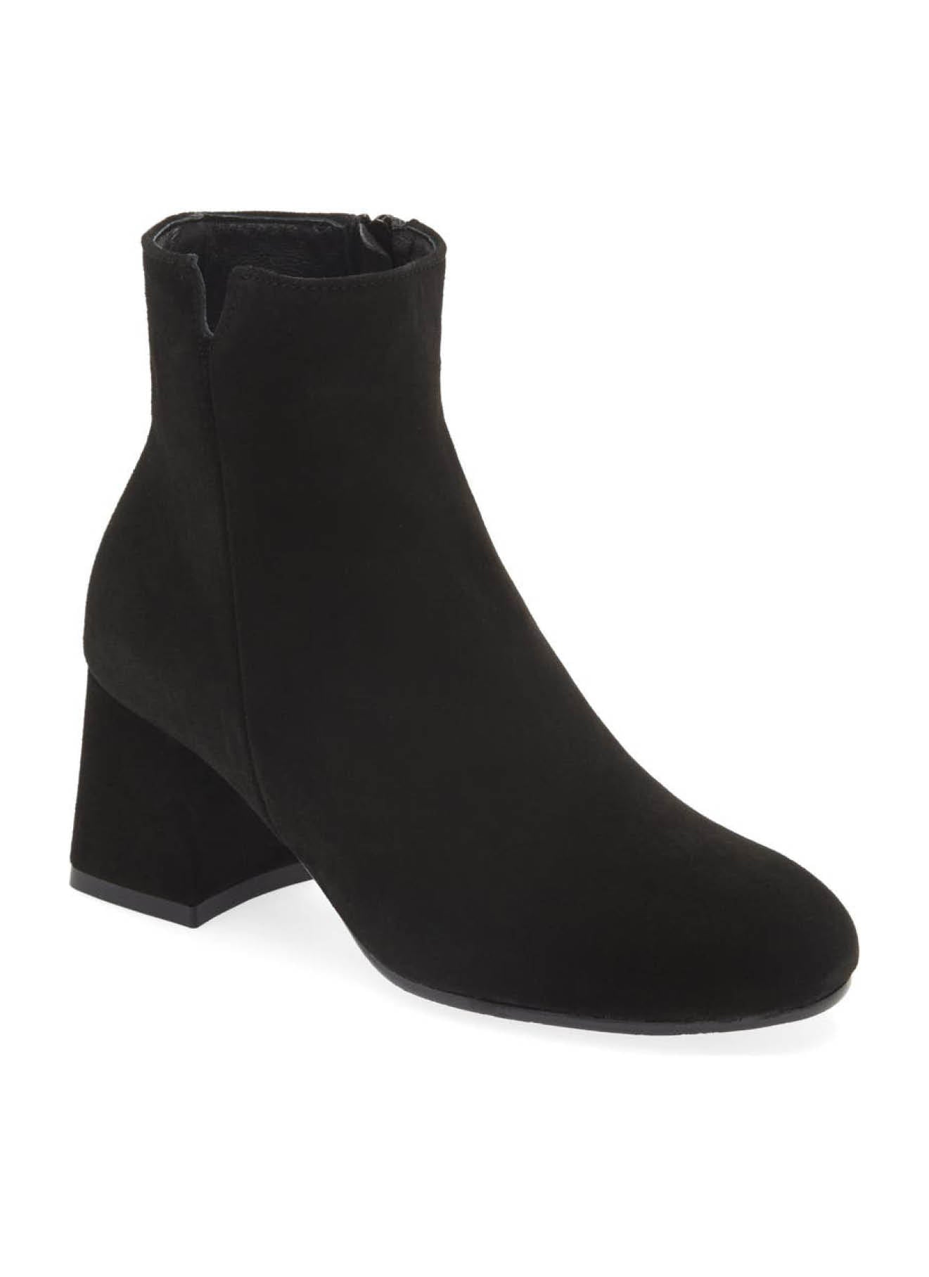 A plain toe and flared block heel balance a versatile bootie crafted with a supple suede upper and cushioned footbed for lasting wear.
