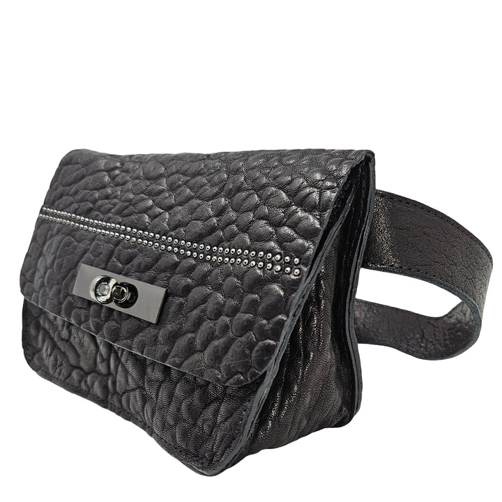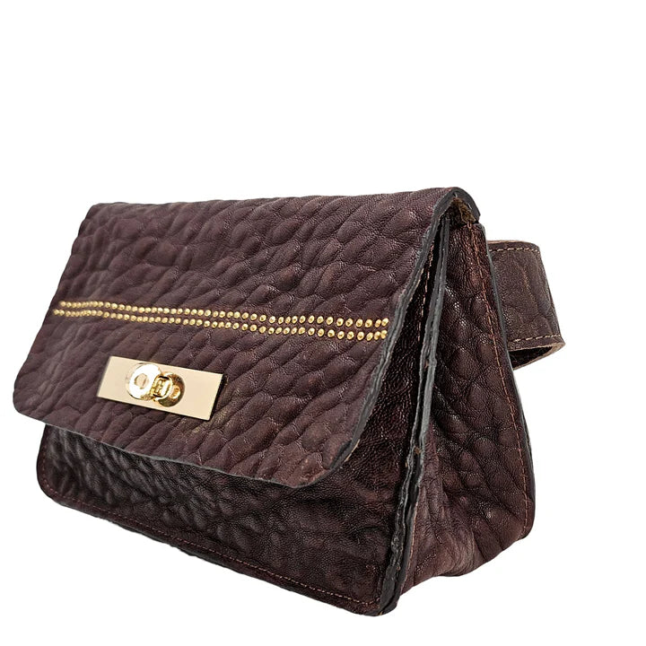 This exquisite fanny bag, handcrafted in Los Angeles from luxurious Italian leather, boasts elegant gold hardware and ample space to hold all of your essential items while out and about. This unique statement piece is both stylish and functional.