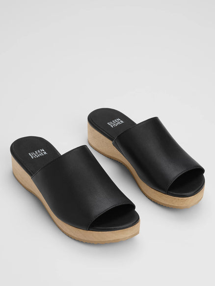 Simple and modern. An effortless wedge sandal you can slip on and go, in soft tumbled leather