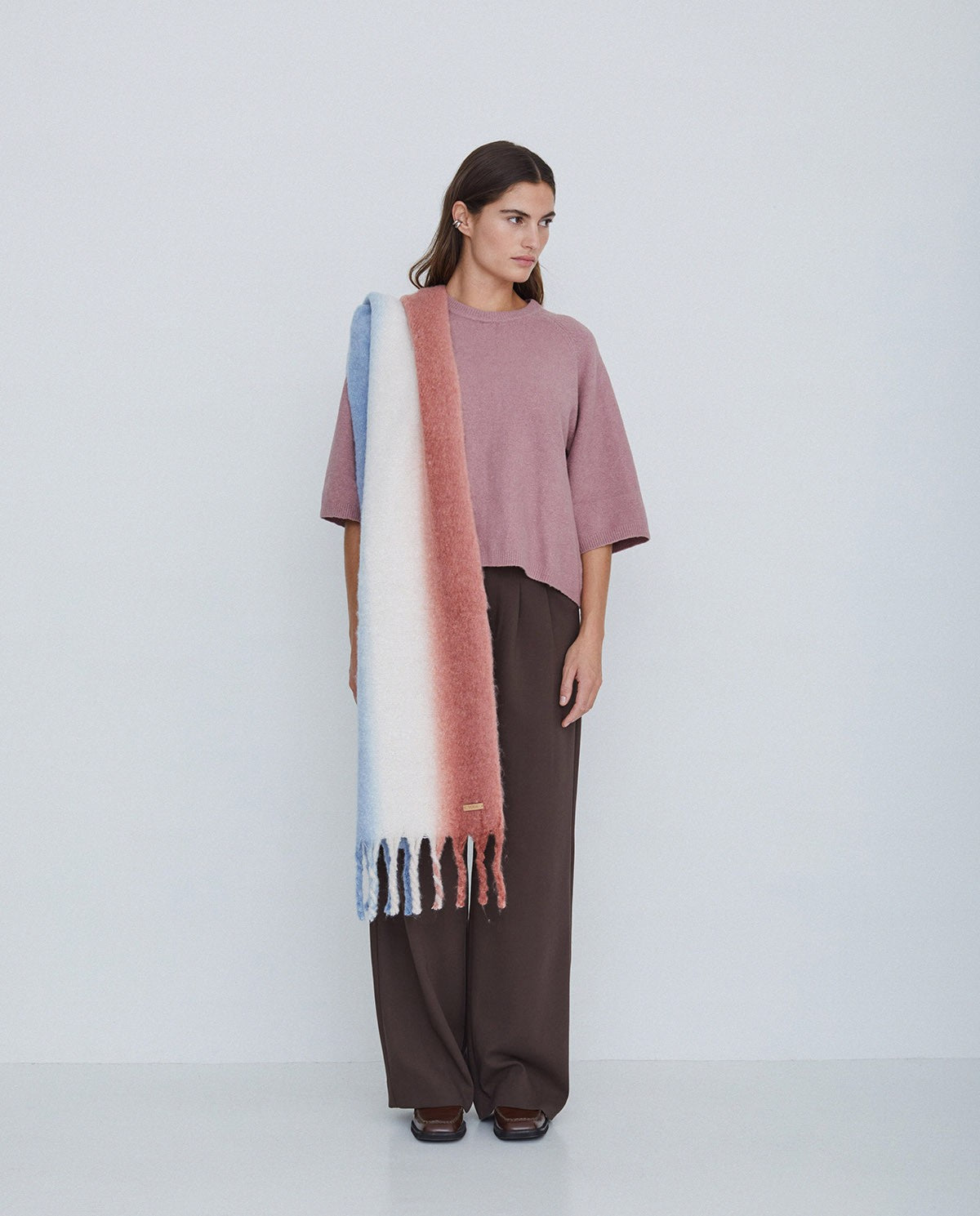 Set yourself apart from the crowd with our uber soft, quirky Plaid Maxi Scarf. With a unique color gradient design and fun fringes, this 5.5 foot long and 15 inches wide scarf is perfect for adding a playful touch to any outfit. Made from 100% recycled polyester, this scarf is environmentally friendly too!