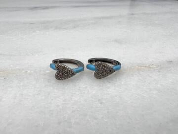 Sterling Blue Enamel Diamond Heart Huggies (HJ-1056)