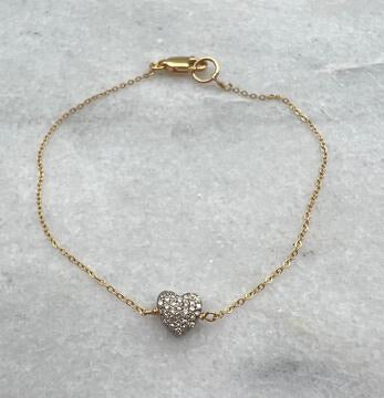 Sterling Diamond Heart on Gold Filled Chain Bracelet (HJ-1061)