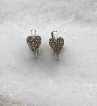 Sterling White Enamel Diamond Heart Huggies (HJ-1057)