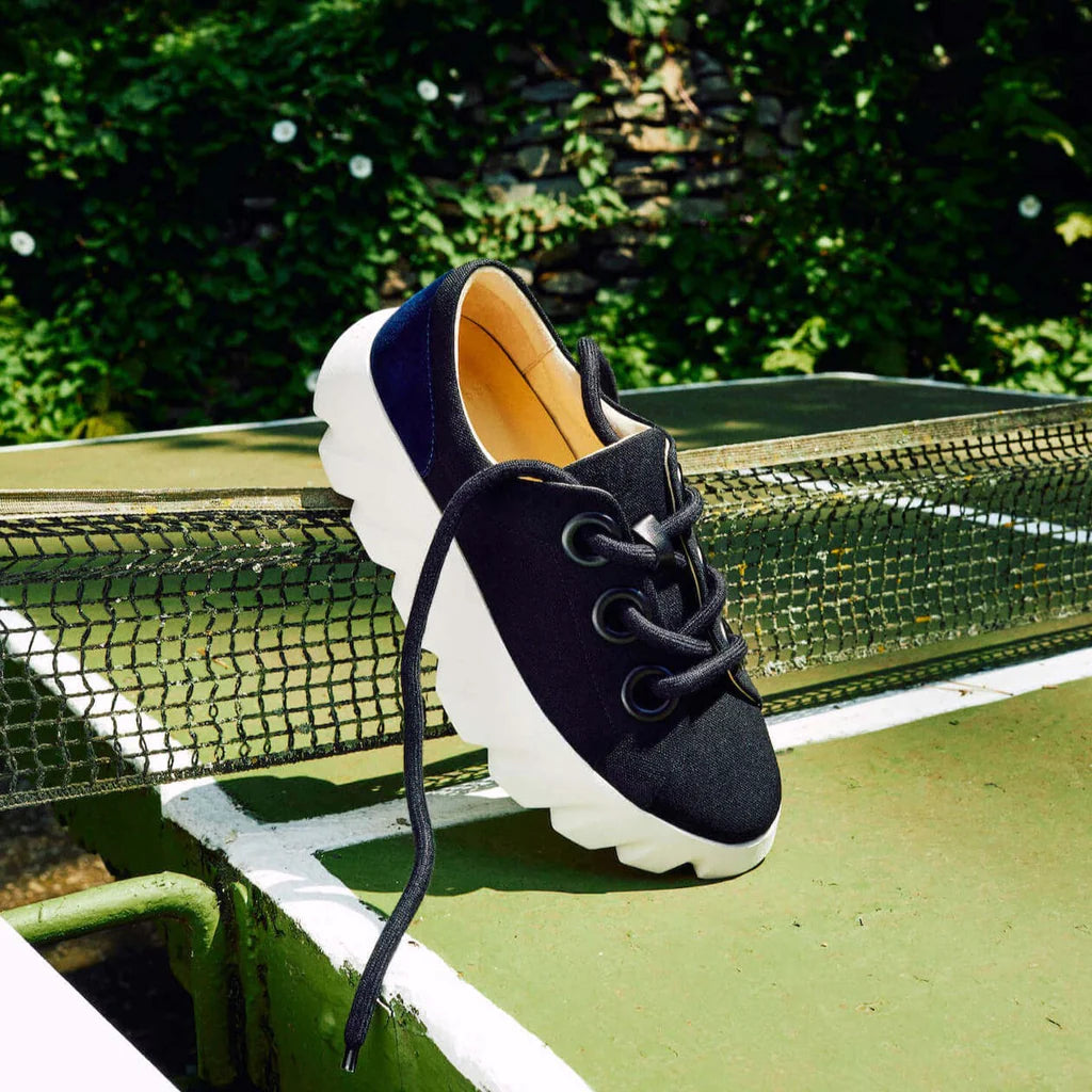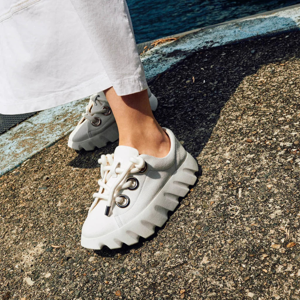This lightweight and soft everyday essential sneaker is made of cotton canvas finished with split-suede on the counter for better durability. The cotton is reinforced with waterproof finishing, and the design is enhanced with oversized eyelets and thick laces that display a comfy cool look.