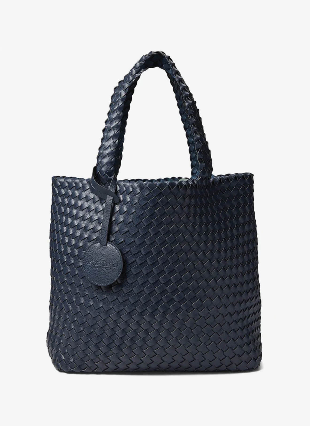 Reversible tote bag by Ilse Jacobsen. This spacious and soft faux-leather tote offers double the styling options to coordinate with any ensemble. The reversible logo tag features a hidden snap hook - attach your wallet or keys to secure them from getting lost at the bottom of your bag.